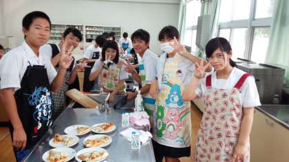 男女仲良く、みんなで協力して、おいしいピザができあがりました!