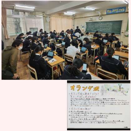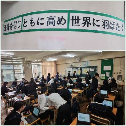 午後の学級活動の時間で、修学旅行へ向けての準備をしています。タブレットを使って各自集合場所までのルートを確認したり、座席や部屋割を決めたり…
