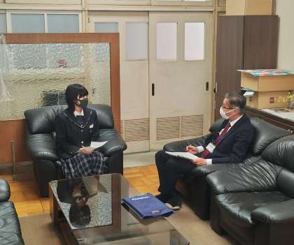 3年生では、今週より校長室にて1人ずつ校長先生による面談を行っています。事前に書いた自己申告書をもとに、校長先生より生徒たちが将来についてどのように考えているかなど質問を交えながらお話をしていただいています。