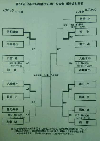 今週13日の日曜日、西中学校グラウンドにおいて、西区PTA親善ソフトボール大会が行われます。