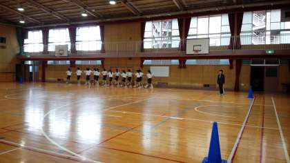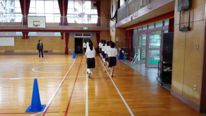 あいにくの天候で運動場は使えませんが、今日も体育館では体育大会の行進練習が行われています。