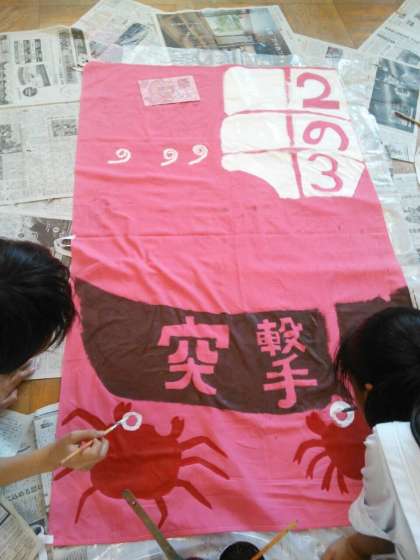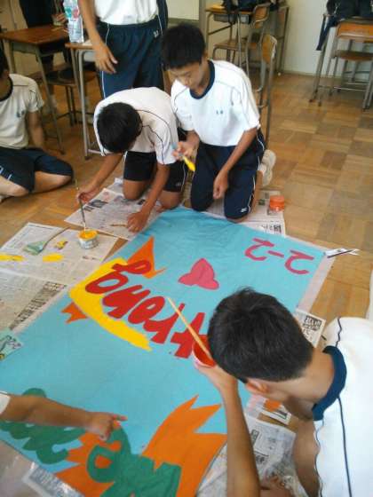 そして、放課後は、各クラスの学級旗を作りです。