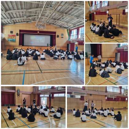 2年生は明日の校外学習に向けて最後の調整を行っています。活動時の注意事項を聞いてメモを取ったり、各係などに分かれてそれぞれの役割の確認をしたりしています。