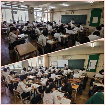 中間テスト前日、各自でこれまでの復習や確認できる時間を設ける教科が増えました。明日のテストへ向け、それぞれの課題に熱心に取り組んでいます。