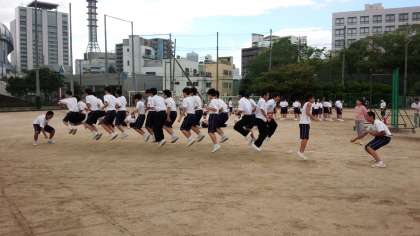 3分間で男女の合計回数を競う(引っかかっても継続)2年生の学年種目「大縄跳び」。