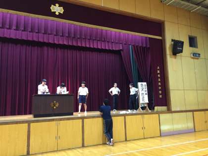 今日は、遅くまで、明日の生徒会役員、立会演説会の予行練習をしています。