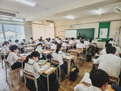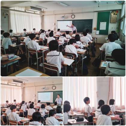 夏休み中の課題が配布され、学習方法等について詳しく説明を受けています。