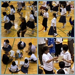 C-N E T達の熱烈な歓迎のあとチームごとのエールの交換、ストレッチに続いてBINGOです。初めて会う人にも英語で話せたかな?