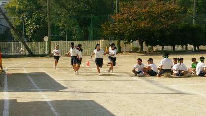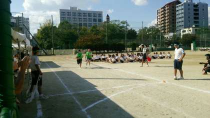 女子は100メートル、男子は200メートルの3周で勝負します。