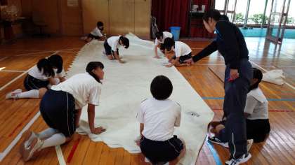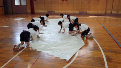 体育大会で使ったテントも、きれいに拭いてから片付けています。