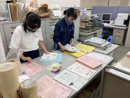 2年生職場体験、大阪市立中央図書館と区役所での様子です。区役所では、区長さんにお会いする機会を作っていただけました。