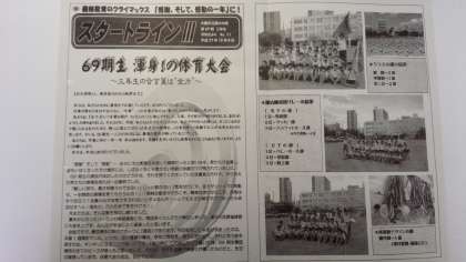 余談ですが、集団演技の味付けの一つに『選曲』があります。今回使用した4曲が決まったのは、本番1週間前でした。いつも、技の種類や構成、学年の雰囲気・様子に合わせて、それに合う曲を探すため、ギリギリになることが多いのです。『海の声』、この曲にたどり着いた時、69期生集団演技の全てのピースが揃ったと思いました。それも、君たち全員の頑張りが導いたものだと、先生は確信しています。体育大会の成功、おめでとう!