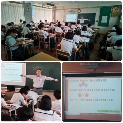 様々な物質の分子について、その構造を学習しています。それぞれの原子がまるで手をつなぐようにカギでつながって分子を構成していることを学んでいます。