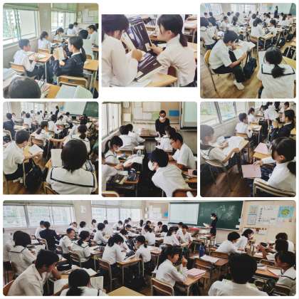竹取物語の暗唱テストが次回の授業で行われるため、各自ペアに分かれて読む練習や暗唱の練習をしています。