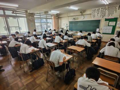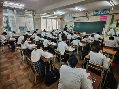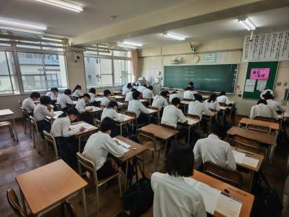 普段の校内テストの方が難しかったという生徒、問題の量が多かったという生徒、等さまざまな感想が聞かれましたが、4技能あわせて3時間におよぶテストをみな集中力を切らさず最後まで頑張りました。
