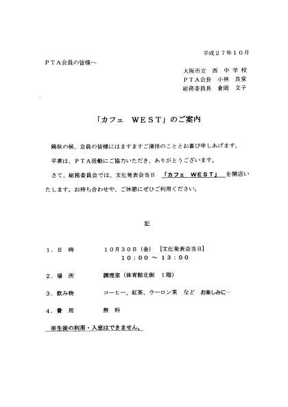 本年度も、文化発表会当日にカフェWESTを開店いたします。
