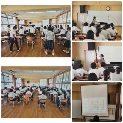 文化発表会の合唱曲の練習をするほか、器楽でギターの弾き方について学習しています。
