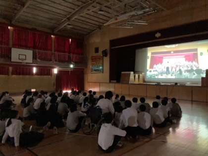 当日、多くの2年生は自分達の準備の関係で3年生の発表を見れていなかったので、映像ではありますが3年生の発表に見入っていました。