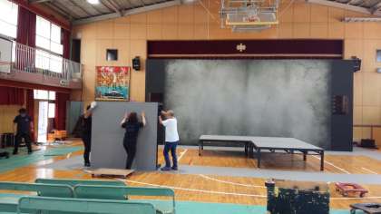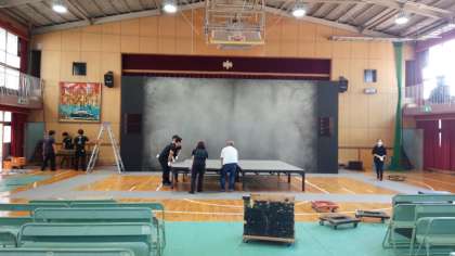 本日、午後から「芸術鑑賞」で公演していただく、「ミラマーレ・オペラ」の皆さんが、朝8時前から本校に到着し、着々と準備をしていただいています。