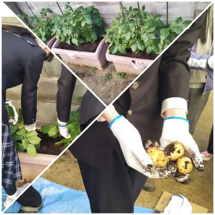 本日午前中に、大空学級にてこれまで育ててきたジャガイモの芋ほりをしました。プランター植えでしたが、ご覧のようにたくさん収穫できました。収穫したジャガイモを使って、後日調理実習をする予定です。