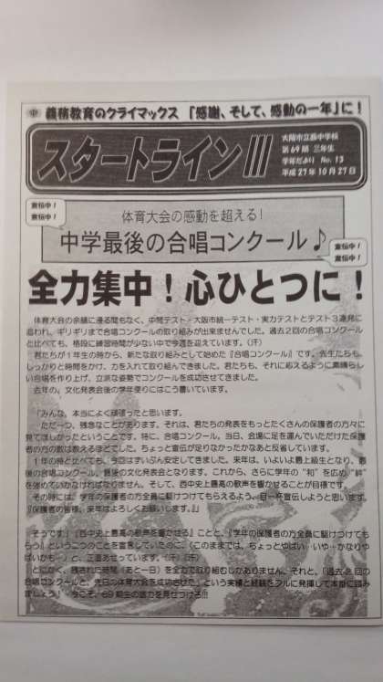 いよいよ、明日、10月28日(水)は、合唱コンクールです。