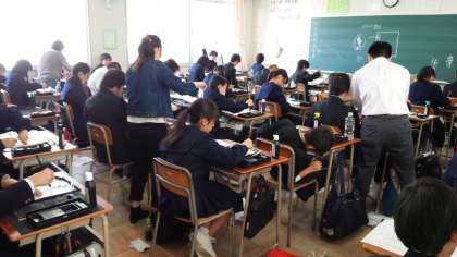 いつもと違い少し狭いですが、生徒たちは真剣に書写に取り組んでいます。