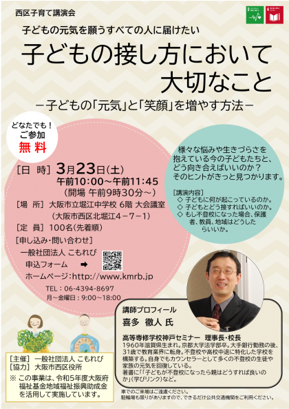 3月23日(土)午前10時より、西区子育て講演会が開催されます。子育てや子供への接し方について、ヒントとなるようなお話が聞ける場になると思います。保護者の皆様のご参加を期待しています。なお、下のチラシは月曜日に生徒を通じて配布いたしますので、ご確認ください。
