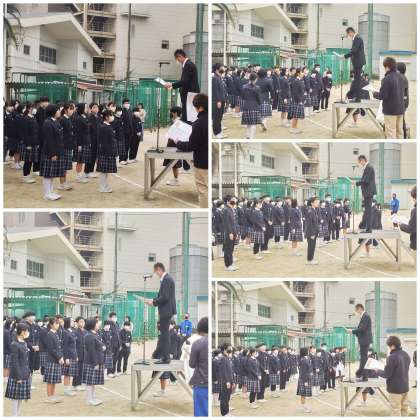 今日が3学年そろう最後の全校集会です。来週の今日は公立高校の一般選抜の日です。3年生の多くの人は受験すると思います。