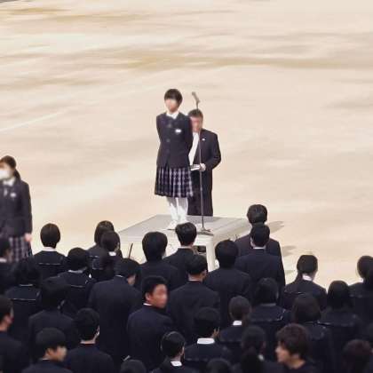 校長先生より、部活動の仮入部や各種のテストの無回答率を例に、挑戦することの大切さについてお話がありました。