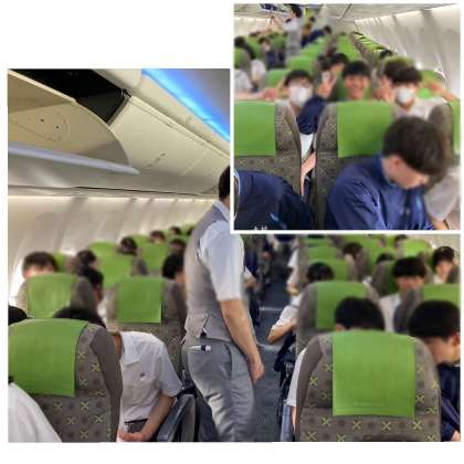 7時48分、手荷物検査を受け 無事 出発ロビーへ到着 飛行機に乗り込んで、 いよいよこれから出発です。