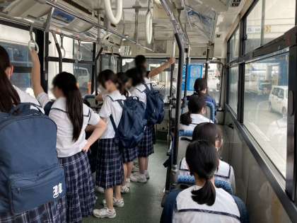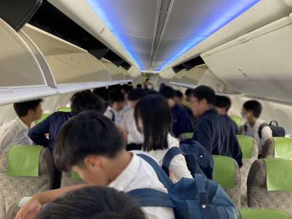 天候は曇り、気温は26°c 。参加者全員元気です。 日光はこれからバスに乗車し、平和記念公園へ向かいます。
