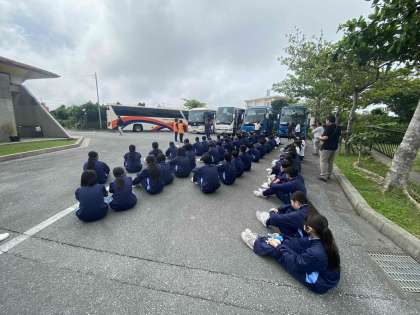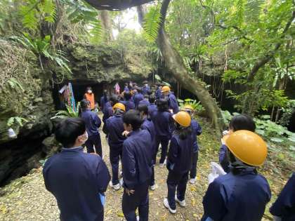 糸数壕の見学を終えました。一言では表現できませんが、文化祭での劇や、今まで平和学習で学んできたことを、さらに深めることができた貴重な時間でした。2度と戦争を起こさない。平和な世界を築いていかなければ、という決意がさらに強くなりました。