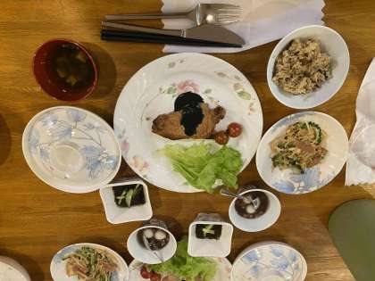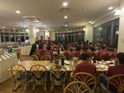 夕食は、ジューシー(沖縄の炊き込みご飯)と、アーサ汁(あおさがはいったお汁)が特に美味しく大人気で、何度もおかわりをしていました。