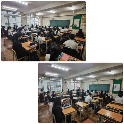 今週より毎週金曜日に来る、養護教諭をめざすインターン生の紹介を行いました。また、校長先生より、急激な気温の変化による熱中症等の体調不良を起こさないためにも、睡眠や栄養、水分をしっかりと取ることの大切さのお話があり、特に1、2年生については一泊移住や校外学習でいつもと違った環境下で充実した活動ができるようにとお話がありました。