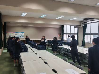 1年生では、一泊移住の荷物を朝から持参し、午前中は普段通り授業に打ち込み、午後からは忘れ物がないかや、当日の行程を確認しています。