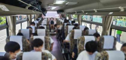 バスに乗り込み、保護者や先生方に見送られて、学校を出発しました。