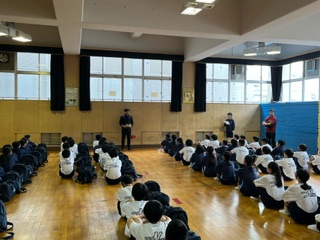 解散式で学年として良かったところ、これから成長してほしいところについて話がありました。