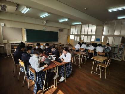 校外学習を振り返って、班ごとにまとめの活動をしています。