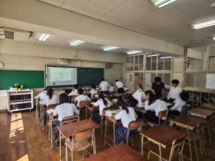 クラスを分割して少人数で同じ内容について学習をしています。