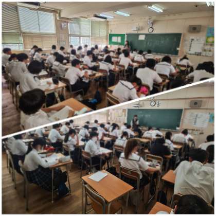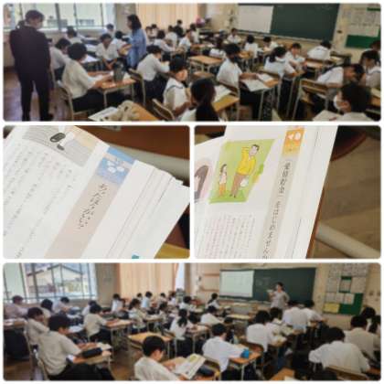 各学年テーマ別に道徳の授業をしています。教科書の題材から考えたことなどをワークシートに書き込んだりしています。