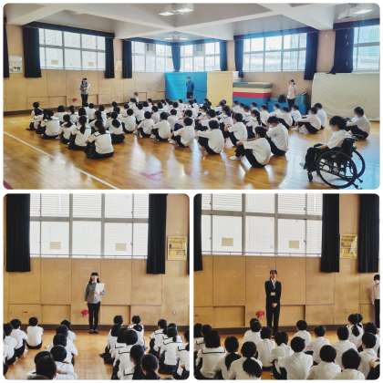学年集会では、1年2組に入る教育実習生の紹介がありました。