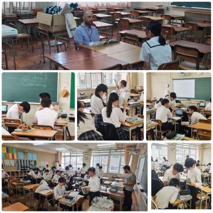 ネイティブスピーカーの先生と各自スピーキングテストを行っています。それ以外の生徒は、話すことの「やりとり」ができるよう練習をしています。