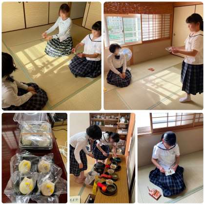 今日の主菓子(百合の花)も先生が用意して下さり、西陽が差し込む和室で、楽しんで部活動に取り組んでいます。