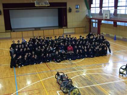 最後に2年生みんなで車椅子リレーと記念撮影もしていただきました。