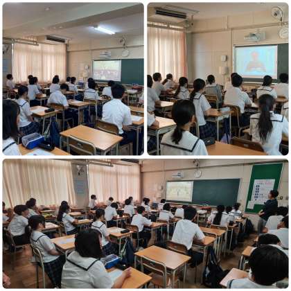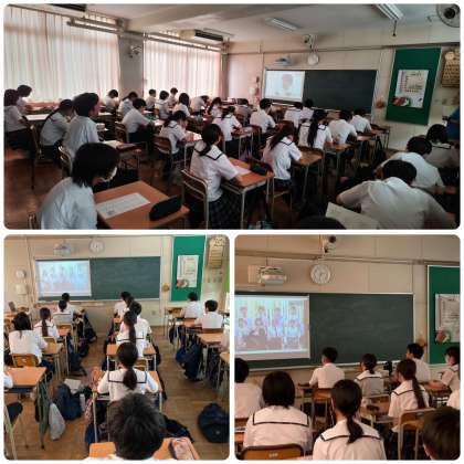 沖縄慰霊の日の戦没者追悼式の映像を見ながら平和学習を行っています。