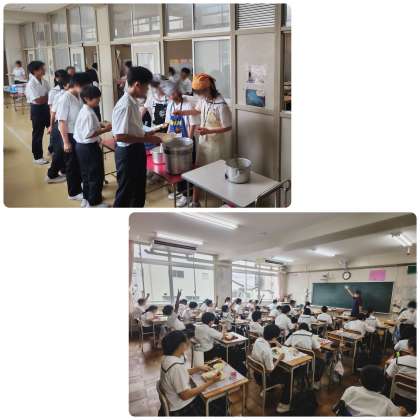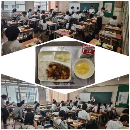 本日の給食は、ハヤシライス、キャベツのゆずドレッシング、りんご(カット缶)でした。