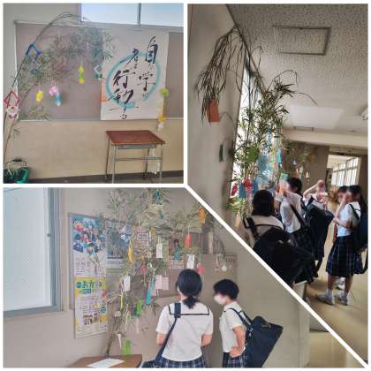 日曜日の七夕を前に、生徒たちは今年もいただいた笹に願いを込めた短冊を思い思いにくくりつけています。