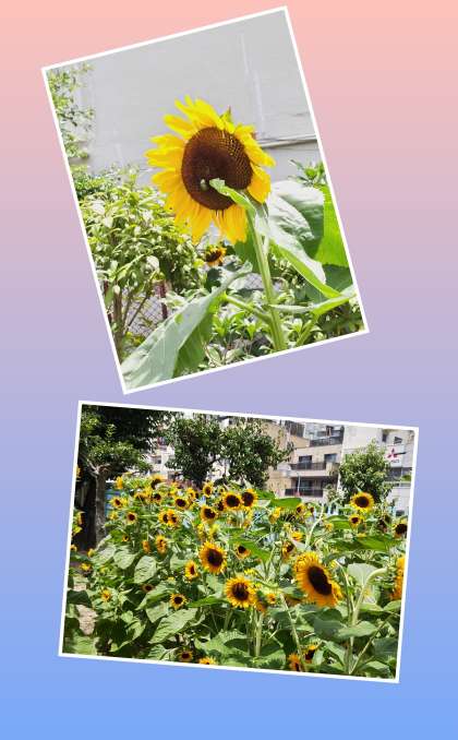 暑い日が続きますが、正門に沿って咲くひまわりたちはしっかりと太陽を見つめています。熱中症や感染症には十分に気をつけてくださいね。