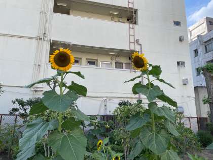 正門を入って左にあるひまわりは、とても大きくなってます。