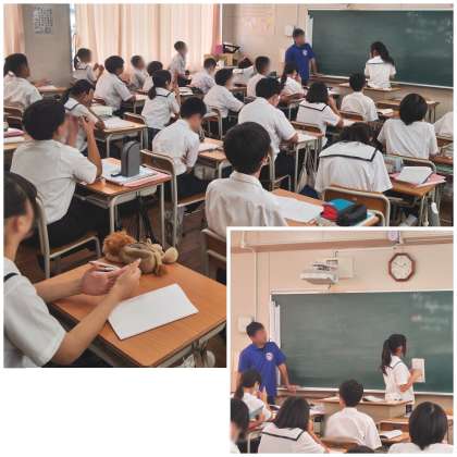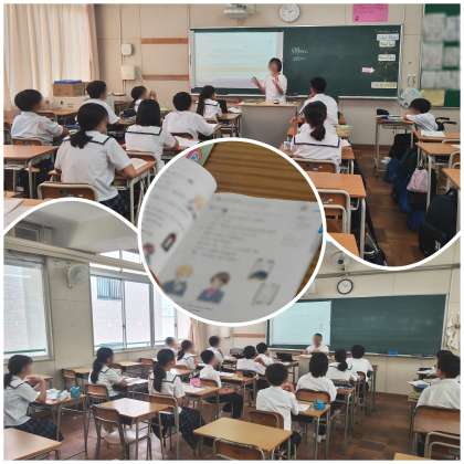 書道について説明をしたりする場面の英文を読んだり、疑問詞のある疑問文でbe動詞のものと一般動詞のもの、canを使ったものの違いに注意しながら質問を作ってみたりしています。